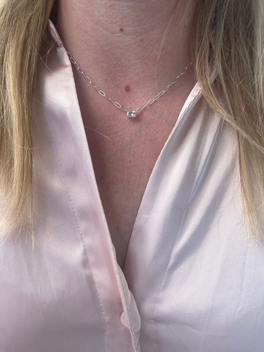 Solitaire sterling sølv halskæde med naturlig hvid safir