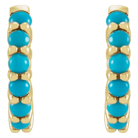 14 kt. Guld Hoops med Runde Cabochon-Turkiser
