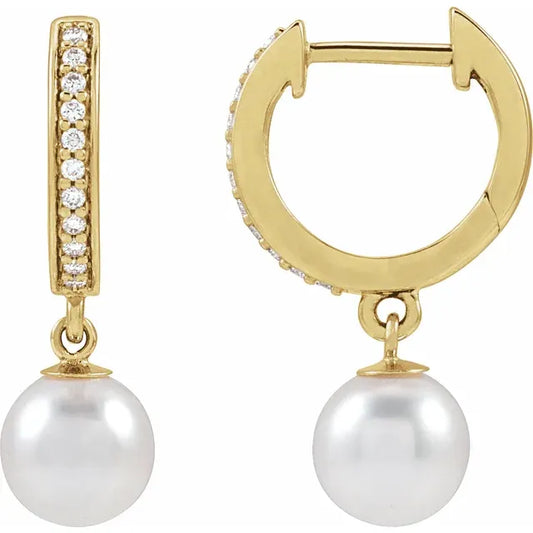14 karat Guld Hoops med hvide ferskvandsperler og diamanter